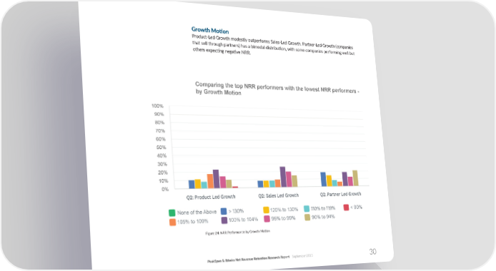 Growth Mo琀椀on Product-Led Growth modestly outperforms Sales-Led Growth. Partner-Led Growth (companies that sell through partners) has a bimodal distribu琀椀on, with some companies performing well but others expec琀椀ng nega琀椀ve NRR. Comparing the top NRR performers with the lowest NRR performers - by Growth Motion Figure 24: NRR Performance by Growth Mo琀椀on PeakSpan & Ibbaka Net Revenue Reten琀椀on Research Report September 2023 30