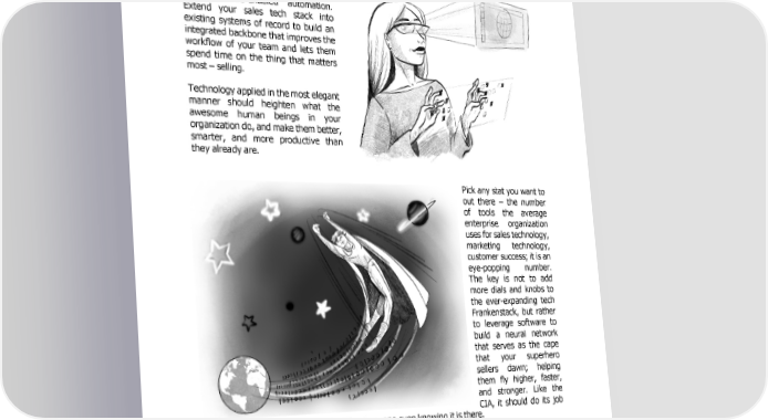 Salespeople are unique beasts, and we love them for it. They have their idiosyncratic ways of going about their business. They are driven by success, defined as closing business and making sure it sticks. They are compensated accordingly, and they are the lifeblood of any growing company. Enable your sellers, enhance their efforts and eradicate tedious tasks with software-enabled automation. Extend your sales tech stack into existing systems of record to build an integrated backbone that improves the workflow of your team and lets them spend time on the thing that matters most – selling. Technology applied in the most elegant manner should heighten what the awesome human beings in your organization do, and make them better, smarter, and more productive than they already are. Pick any stat you want to out there – the number of tools the average enterprise organization uses for sales technology, marketing technology, customer success; it is an eye-popping number. The key is not to add more dials and knobs to the ever-expanding tech Frankenstack, but rather to leverage software to build a neural network that serves as the cape that your superhero sellers dawn; helping them fly higher, faster, and stronger. Like the CIA, it should do its job by operating in the background, without anyone even knowing it is there. This is not to say that technology is the enemy by any means, or even that there is too much of it out there. Instead, we believe that the best way to deploy technology is as that pure form enabler allowing human beings to reach their full potential. - 24 -